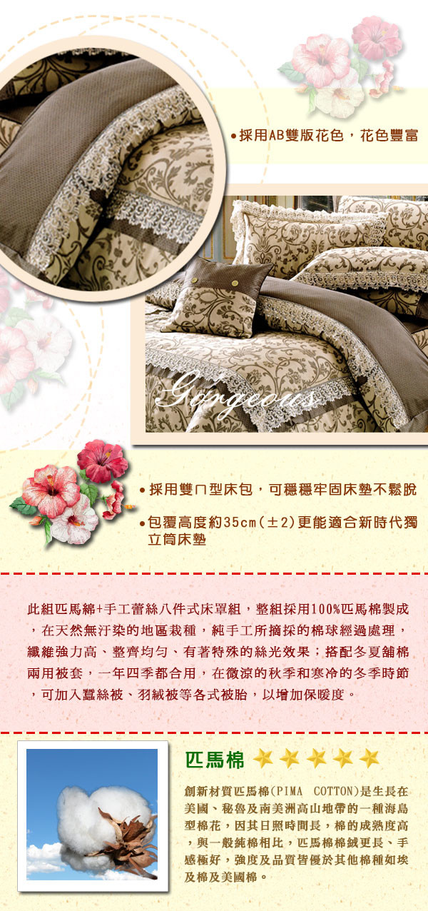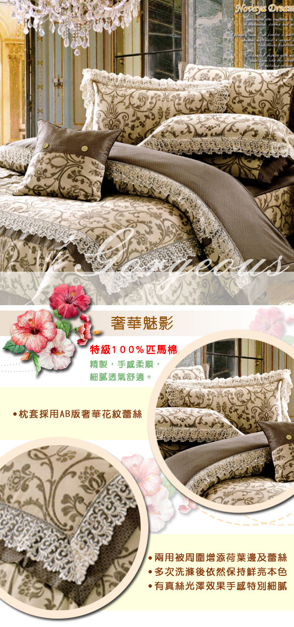 2017家具展 【KOSNEY】奢華愛情 頂級特大匹馬棉蕾絲八件式床罩組
